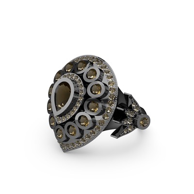 Dumanlı kuvars 925 ayar siyah rodyum kaplama gümüş yüzük