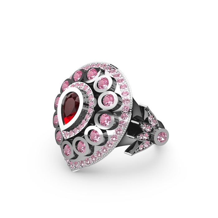 Garnet ve pembe kuvars 925 ayar gümüş yüzük
