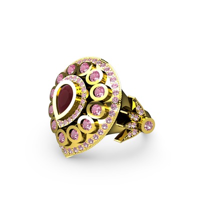 Kök yakut ve pembe kuvars 8 ayar altın yüzük