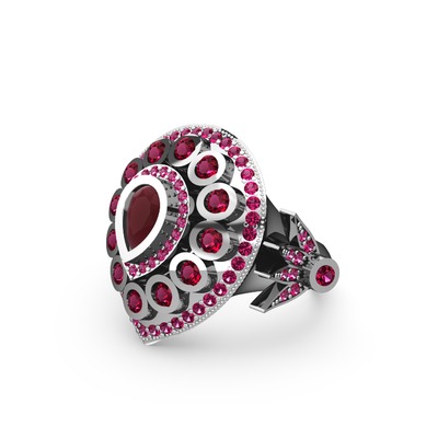 Kök yakut ve rodolit garnet 14 ayar beyaz altın yüzük