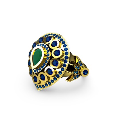 Kök zümrüt ve lab safir 925 ayar altın kaplama gümüş yüzük