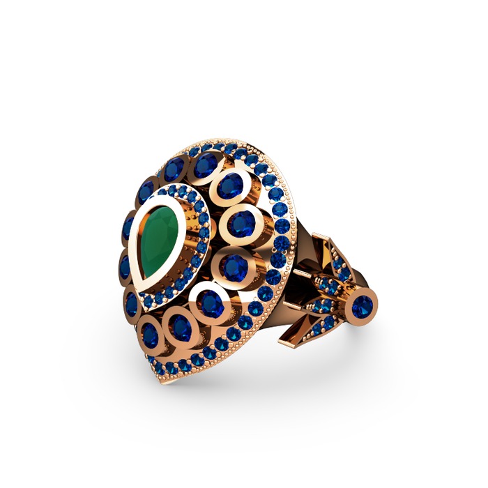 Kök zümrüt ve lab safir 925 ayar rose altın kaplama gümüş yüzük