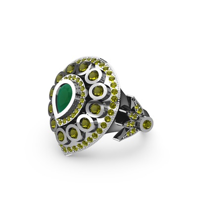 Kök zümrüt ve peridot 8 ayar beyaz altın yüzük