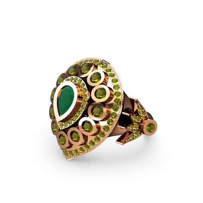 Kök zümrüt ve peridot 8 ayar rose altın yüzük