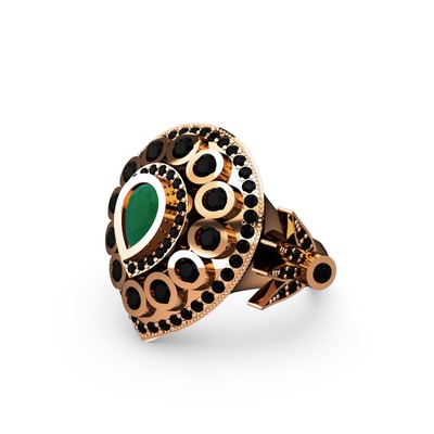 Kök zümrüt ve siyah zirkon 925 ayar rose altın kaplama gümüş yüzük