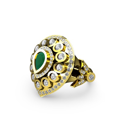 Kök zümrüt ve swarovski 18 ayar altın yüzük