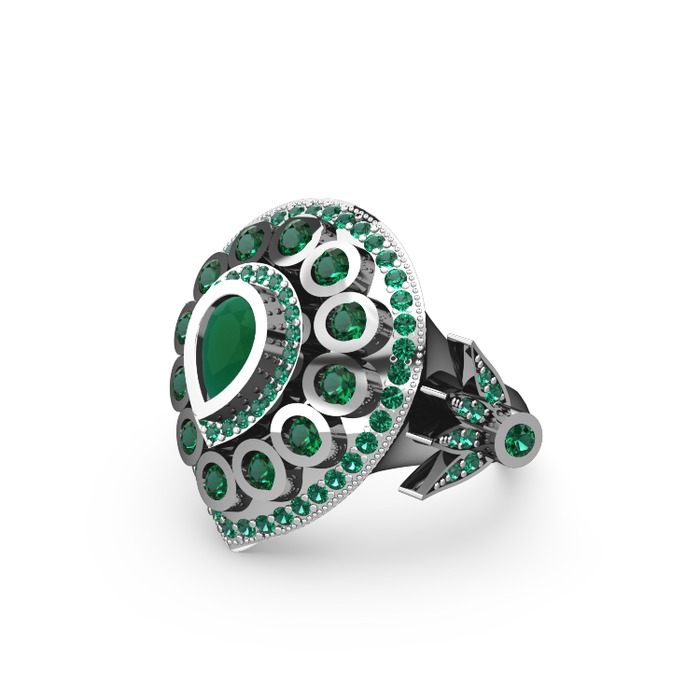 Kök zümrüt ve yeşil kuvars 8 ayar beyaz altın yüzük
