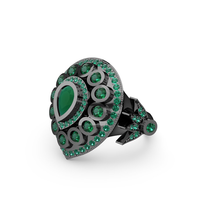 Kök zümrüt ve yeşil kuvars 925 ayar siyah rodyum kaplama gümüş yüzük