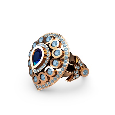 Lab safir ve akuamarin 14 ayar rose altın yüzük