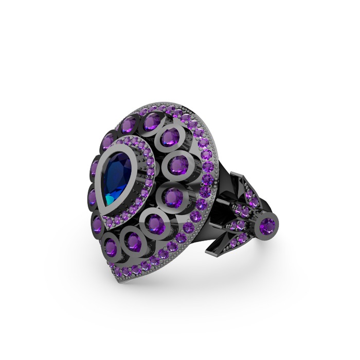 Lab safir ve ametist 925 ayar siyah rodyum kaplama gümüş yüzük