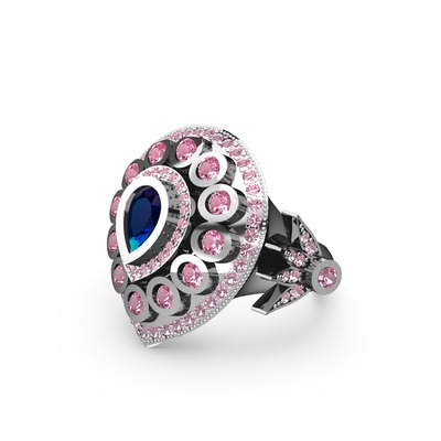 Lab safir ve pembe kuvars 14 ayar beyaz altın yüzük