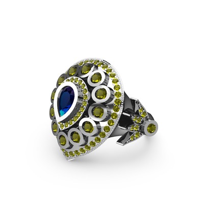Lab safir ve peridot 18 ayar beyaz altın yüzük