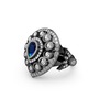 Lab safir ve swarovski 925 ayar siyah rodyum kaplama gümüş yüzük