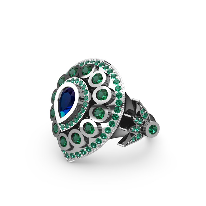Lab safir ve yeşil kuvars 8 ayar beyaz altın yüzük