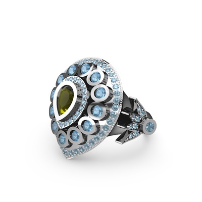 Peridot ve akuamarin 18 ayar beyaz altın yüzük