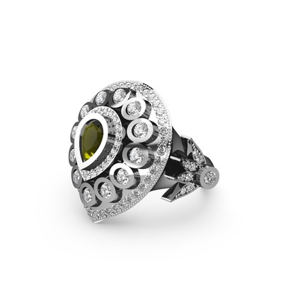 Peridot ve beyaz zirkon 925 ayar gümüş yüzük