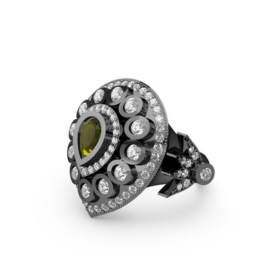 Peridot ve swarovski 925 ayar siyah rodyum kaplama gümüş yüzük