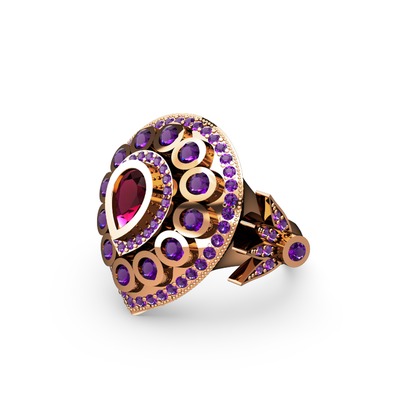 Rodolit garnet ve ametist 925 ayar rose altın kaplama gümüş yüzük