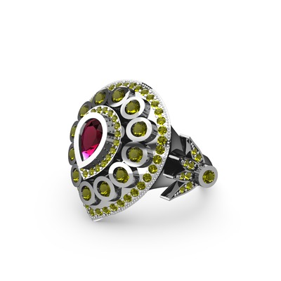 Rodolit garnet ve peridot 925 ayar gümüş yüzük