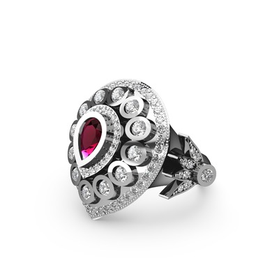 Rodolit garnet ve swarovski 925 ayar gümüş yüzük