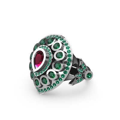 Rodolit garnet ve yeşil kuvars 925 ayar gümüş yüzük