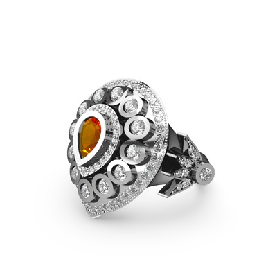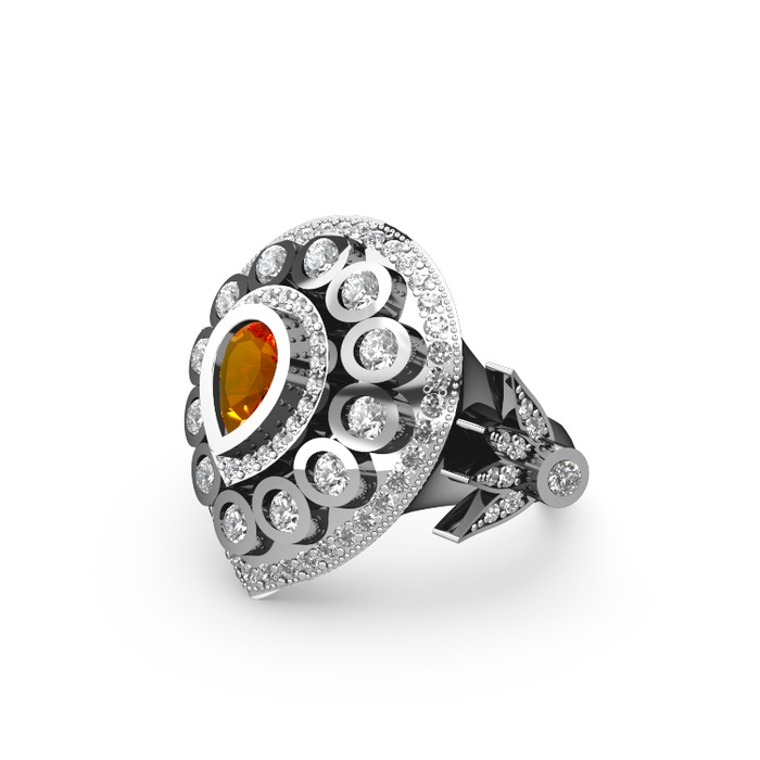 Sitrin ve beyaz zirkon 8 ayar beyaz altın yüzük