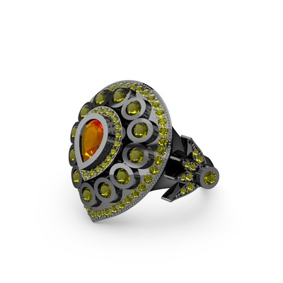 Sitrin ve peridot 925 ayar siyah rodyum kaplama gümüş yüzük