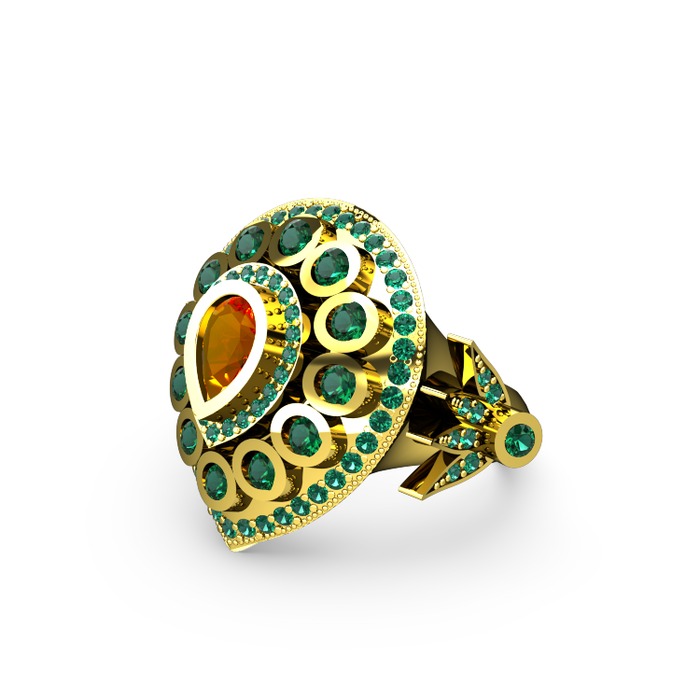 Sitrin ve yeşil kuvars 18 ayar altın yüzük