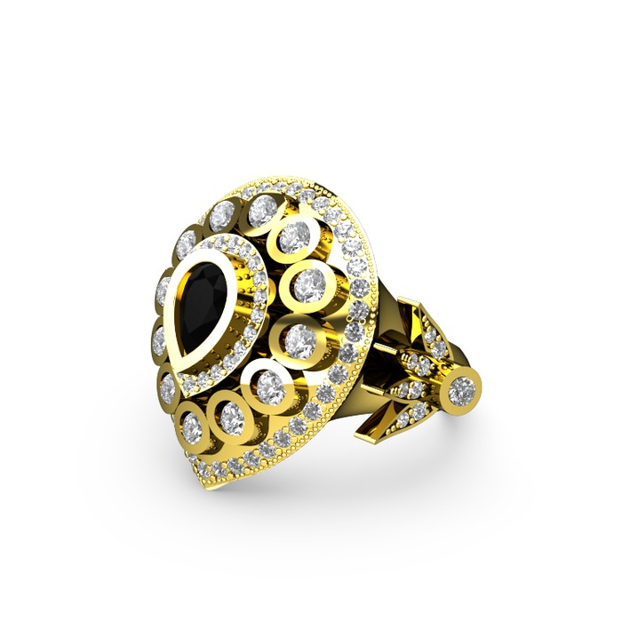 Siyah zirkon ve beyaz zirkon 18 ayar altın yüzük