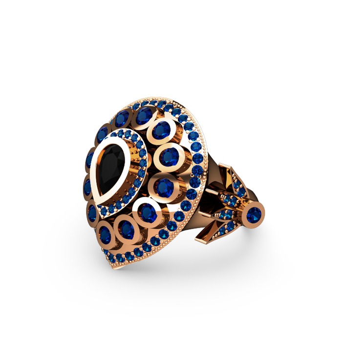 Siyah zirkon ve lab safir 8 ayar rose altın yüzük