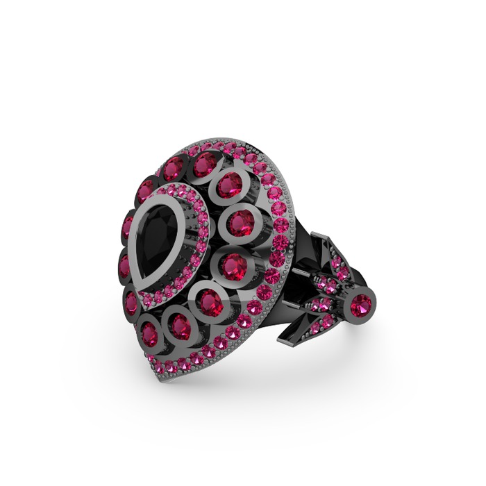 Siyah zirkon ve rodolit garnet 925 ayar siyah rodyum kaplama gümüş yüzük