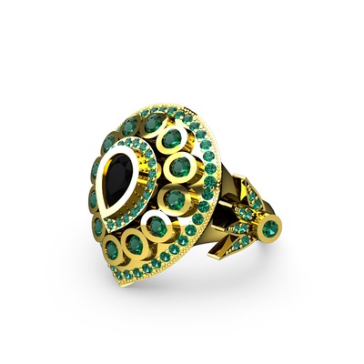 Siyah zirkon ve yeşil kuvars 8 ayar altın yüzük