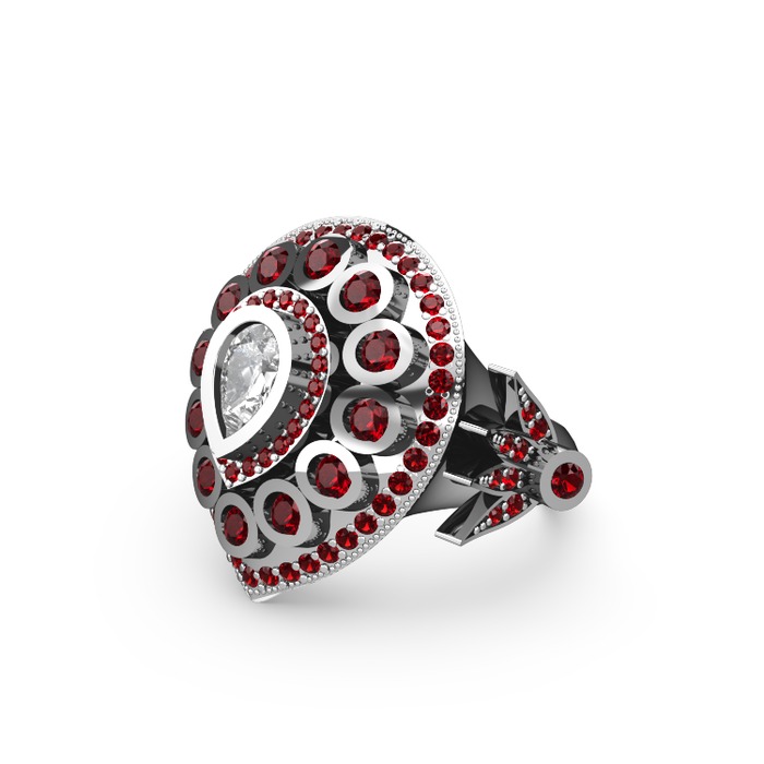 Swarovski ve garnet 8 ayar beyaz altın yüzük