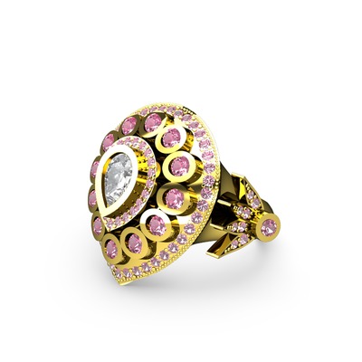 Swarovski ve pembe kuvars 8 ayar altın yüzük