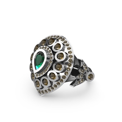 Yeşil kuvars ve dumanlı kuvars 14 ayar beyaz altın yüzük