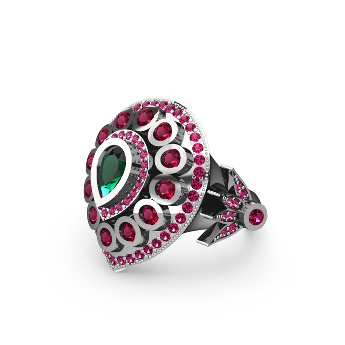 Yeşil kuvars ve rodolit garnet 8 ayar beyaz altın yüzük