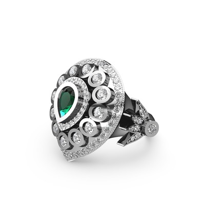 Yeşil kuvars ve swarovski 18 ayar beyaz altın yüzük