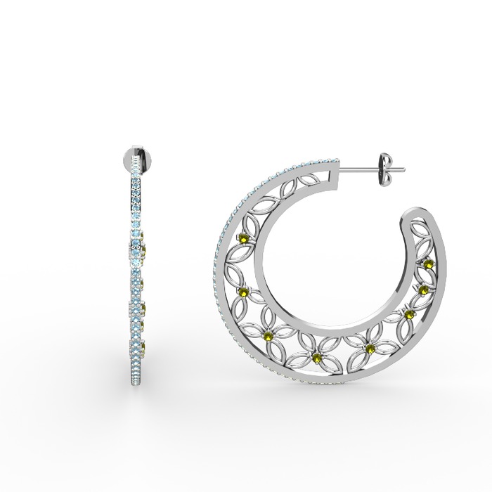 Akuamarin ve peridot 18 ayar beyaz altın küpe