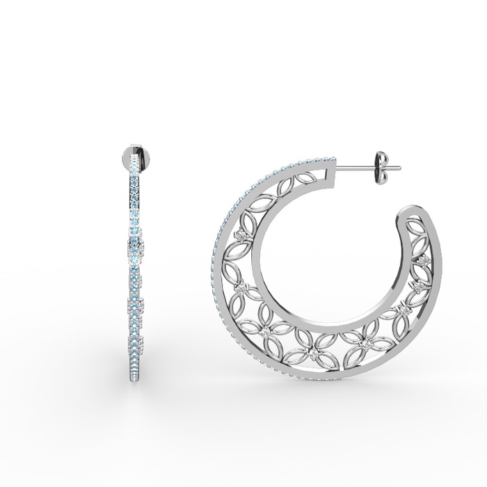 Akuamarin ve swarovski 8 ayar beyaz altın küpe