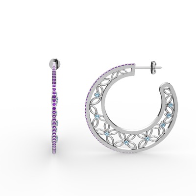 Ametist ve akuamarin 18 ayar beyaz altın küpe
