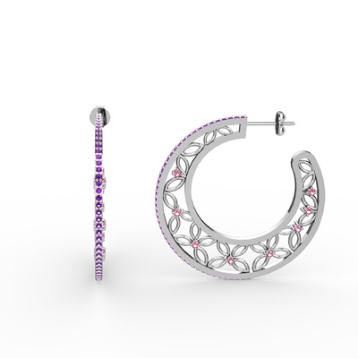Ametist ve pembe kuvars 925 ayar gümüş küpe