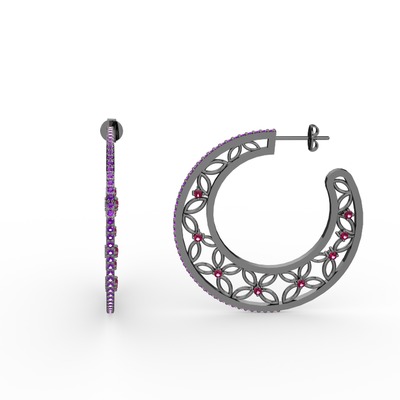 Ametist ve rodolit garnet 925 ayar siyah rodyum kaplama gümüş küpe