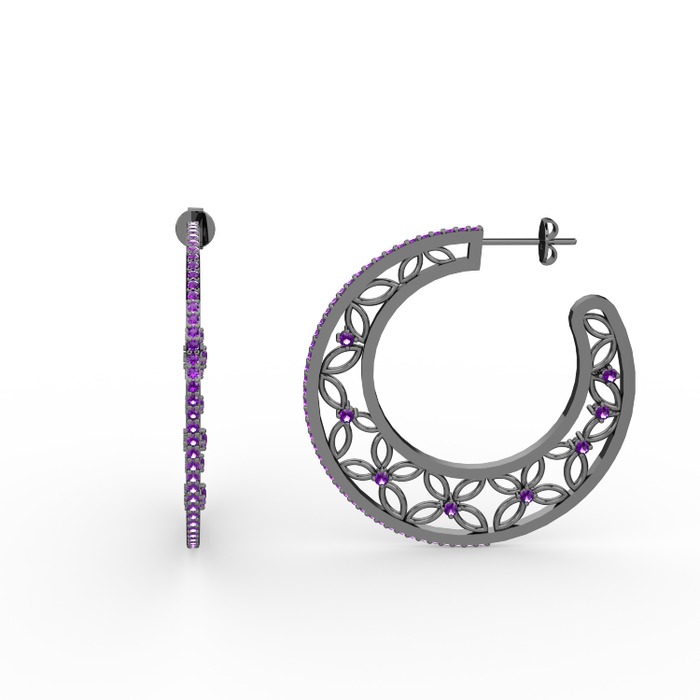 Ametist 925 ayar siyah rodyum kaplama gümüş küpe