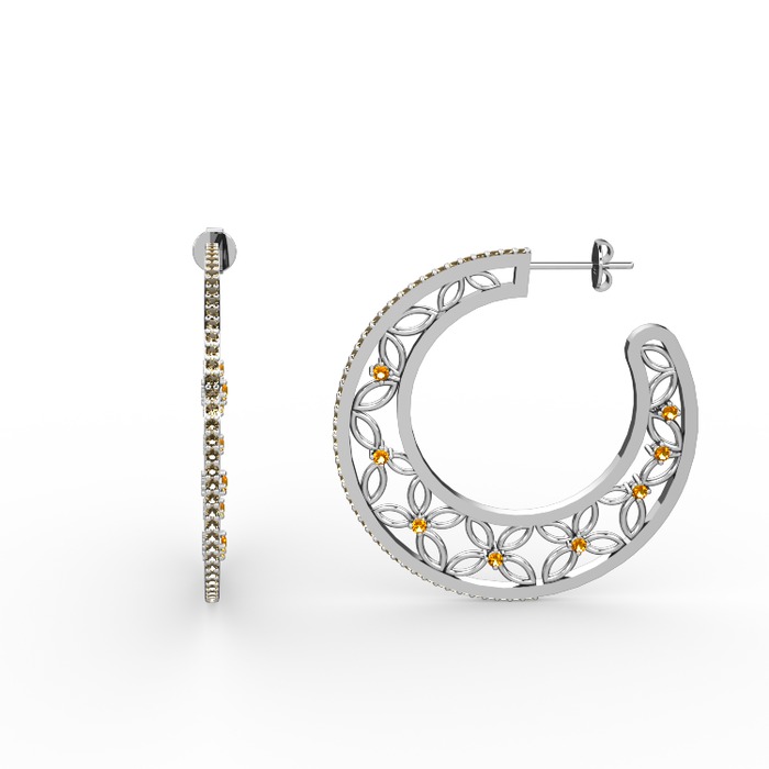 Dumanlı kuvars ve sitrin 8 ayar beyaz altın küpe