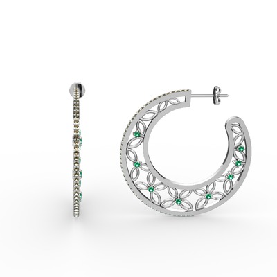 Dumanlı kuvars ve yeşil kuvars 8 ayar beyaz altın küpe