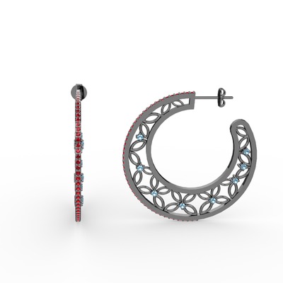 Garnet ve akuamarin 925 ayar siyah rodyum kaplama gümüş küpe