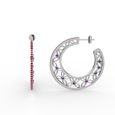 Garnet ve ametist 18 ayar beyaz altın küpe