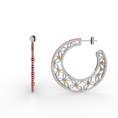 Garnet ve sitrin 18 ayar beyaz altın küpe