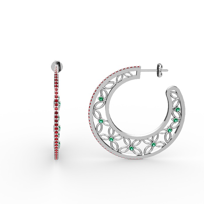 Garnet ve yeşil kuvars 18 ayar beyaz altın küpe