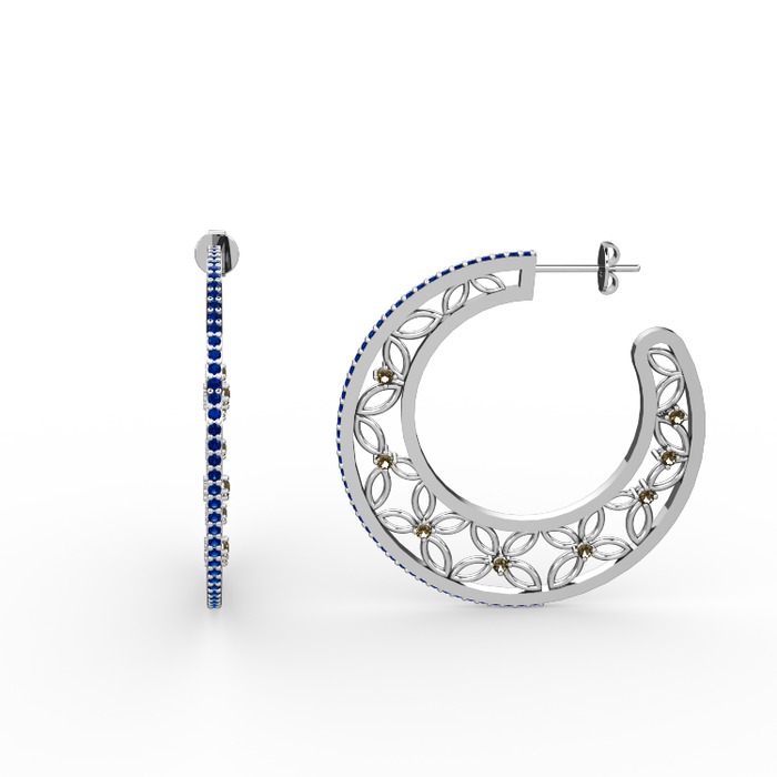 Lab safir ve dumanlı kuvars 925 ayar gümüş küpe